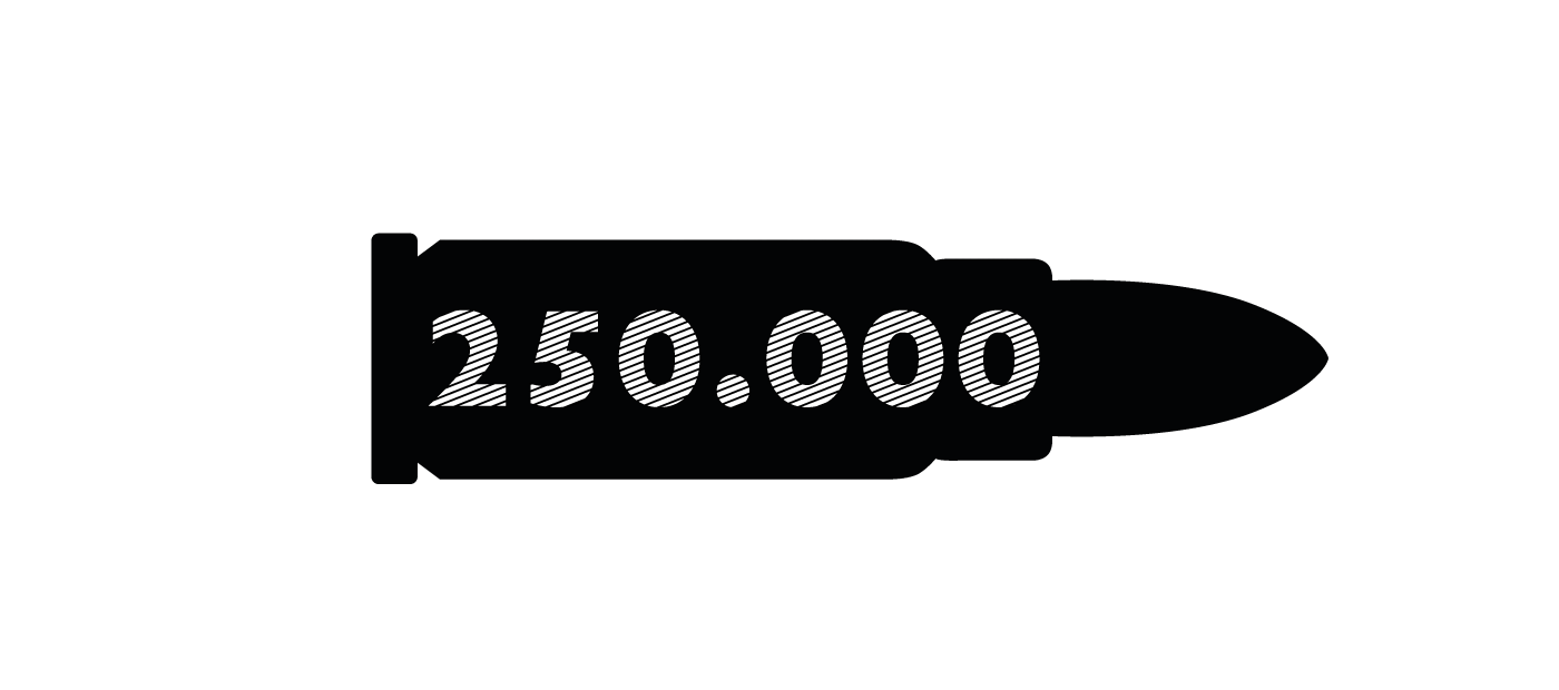 Infografik / Zahl 250.000 auf einer Patrone vor eine Weltkugel