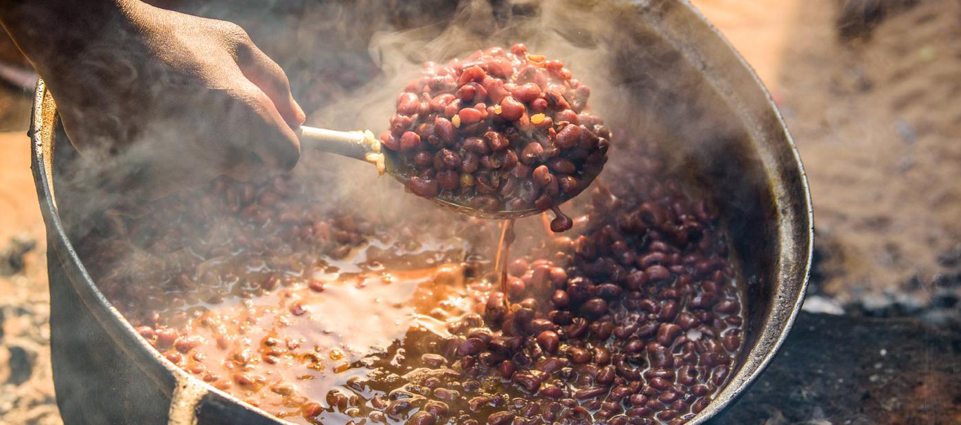 Kochbananen sind ein Hauptnahrungsmittel in Westafrika. Auch Bohnen und Ugali, ein fester Brei aus Maismehl, gibt es in Westafrika häufig zu essen. Neben Bananen, Kochbananen und Maismehl, ist auch Kassava eines der Hauptnahrungsmittel der Region.