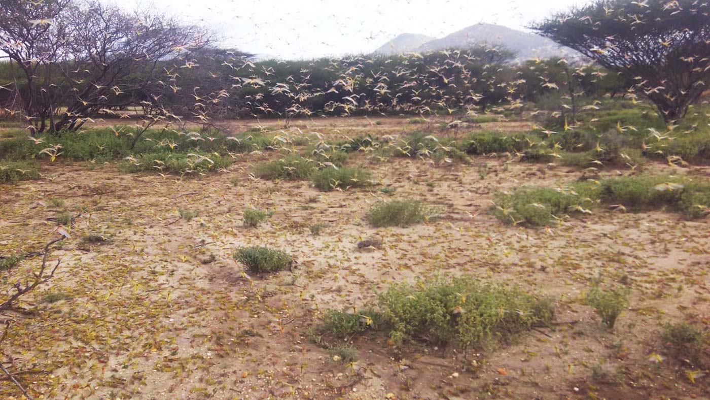 Sie kommen in riesigen Schwärmen und verdunkeln den Himmel über Ostafrika. Hunderte Milliarden fingerlanger Heuschrecken fallen über die Ernten und Weiden in Somalia, Kenia, Äthiopien, Eritrea, Uganda, Tansania und weiteren Ländern der Region her. Die schlimmste Plage dieser Art seit 70 Jahren. Und es könnte noch schlimmer werden, befürchten Experten.