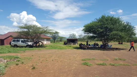 In der Dira Primary School ein ähnliches Bild. Tische und Schulbänke stehen im Schatten eines großen Baumes. Das Schulkomitee erwartet uns. Eine Gruppe von etwa 20 Frauen steht abseits, aber ganz offensichtlich interessiert. Der Vorsitzende des Komitees bittet die Frauen, sich zu uns unter den Baum zu setzen. Er spricht einladend und achtungsvoll. Dann sitzen wir beieinander und hören Raphale zu, der mit leuchtenden Augen über die Arbeit spricht, die er 2012 mit einer Handvoll Kinder unter ebendiesem Baum begonnen hat. Heute gehören zur Schule mehrere Gebäude und landwirtschaftliche Flächen, auf denen Raphale mit den Schülern Gemüse anbaut – für den Eigenbedarf, als Tauschware für andere Lebensmittel und zum Verkauf, um vom Erlös Lehrkräfte und Lehrmaterial zu finanzieren.