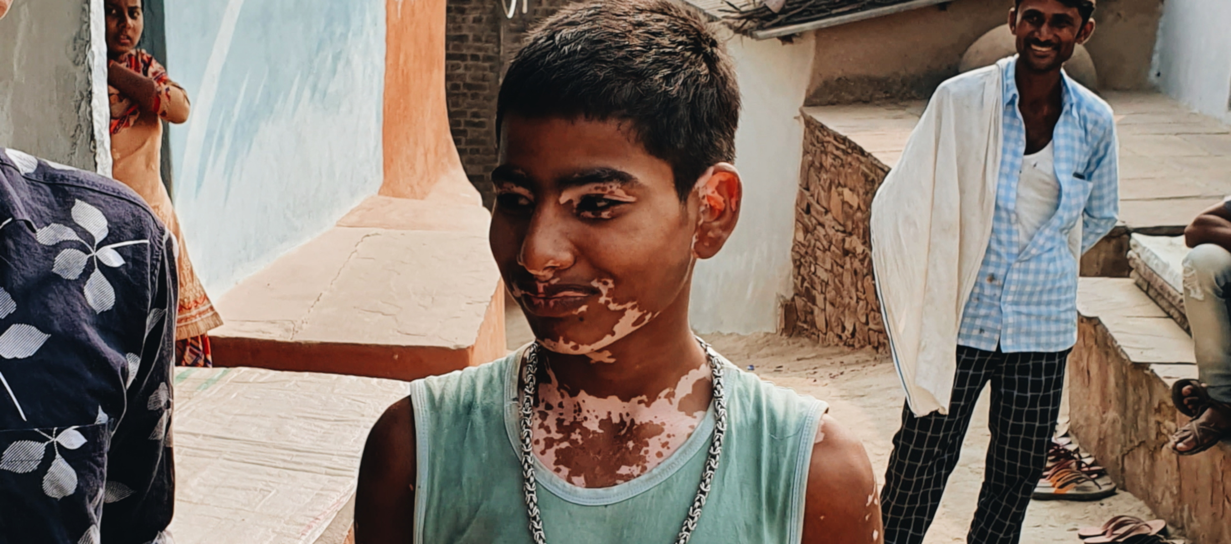 Während der Reise schließe ich eine weitere Patenschaft ab, denn ich lerne noch einen interessanten Jungen kennen. In einem der Projektdörfer fällt er mir auf. Nicht nur wegen seiner Haut - er hat Vitiligo, die Weißfleckenkrankheit - sondern auch wegen seines bezaubernden Lächelns.