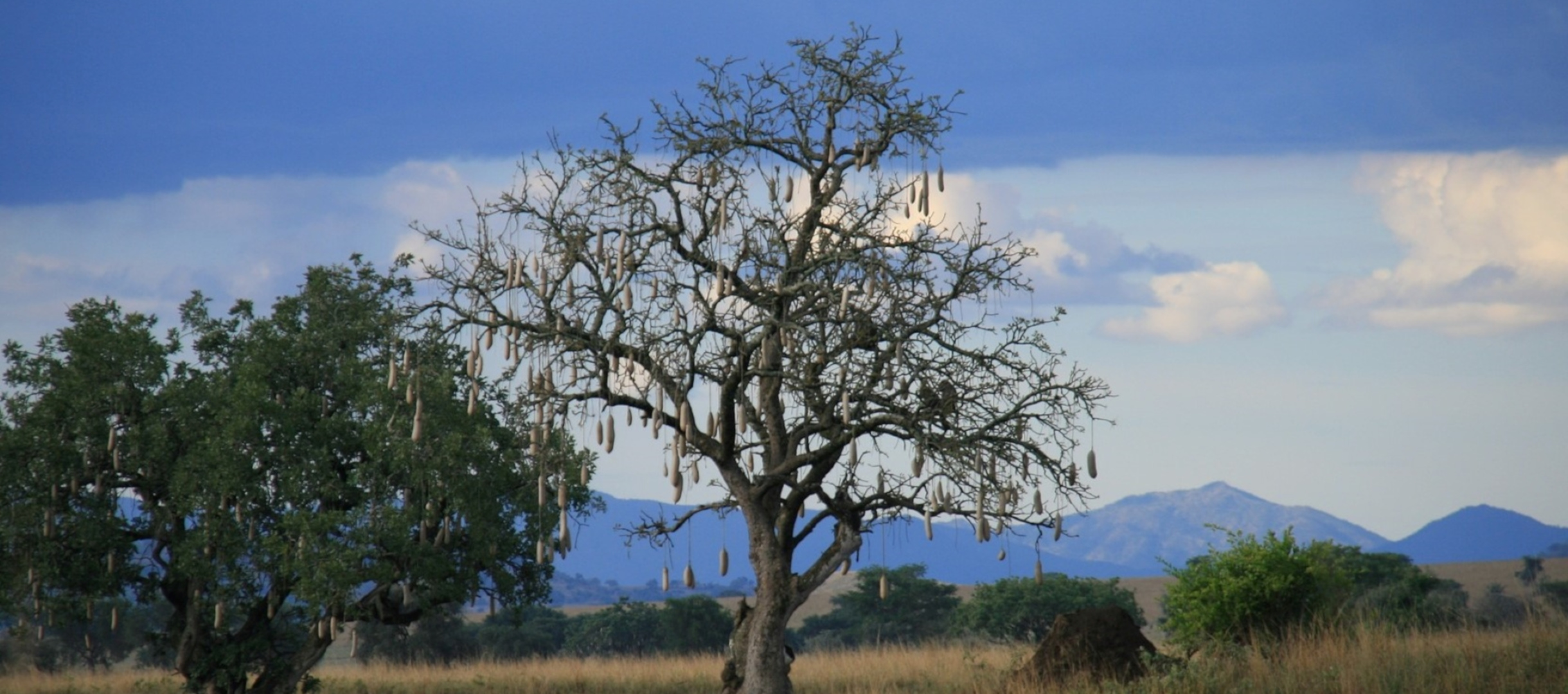 Woher dieser Baum seinen Namen hat, ist nicht schwer zu erraten: Seine – allerdings harten – Früchte sehen aus wie Leberwürste. Sie werden gerne von Elefanten und Giraffen gegessen.