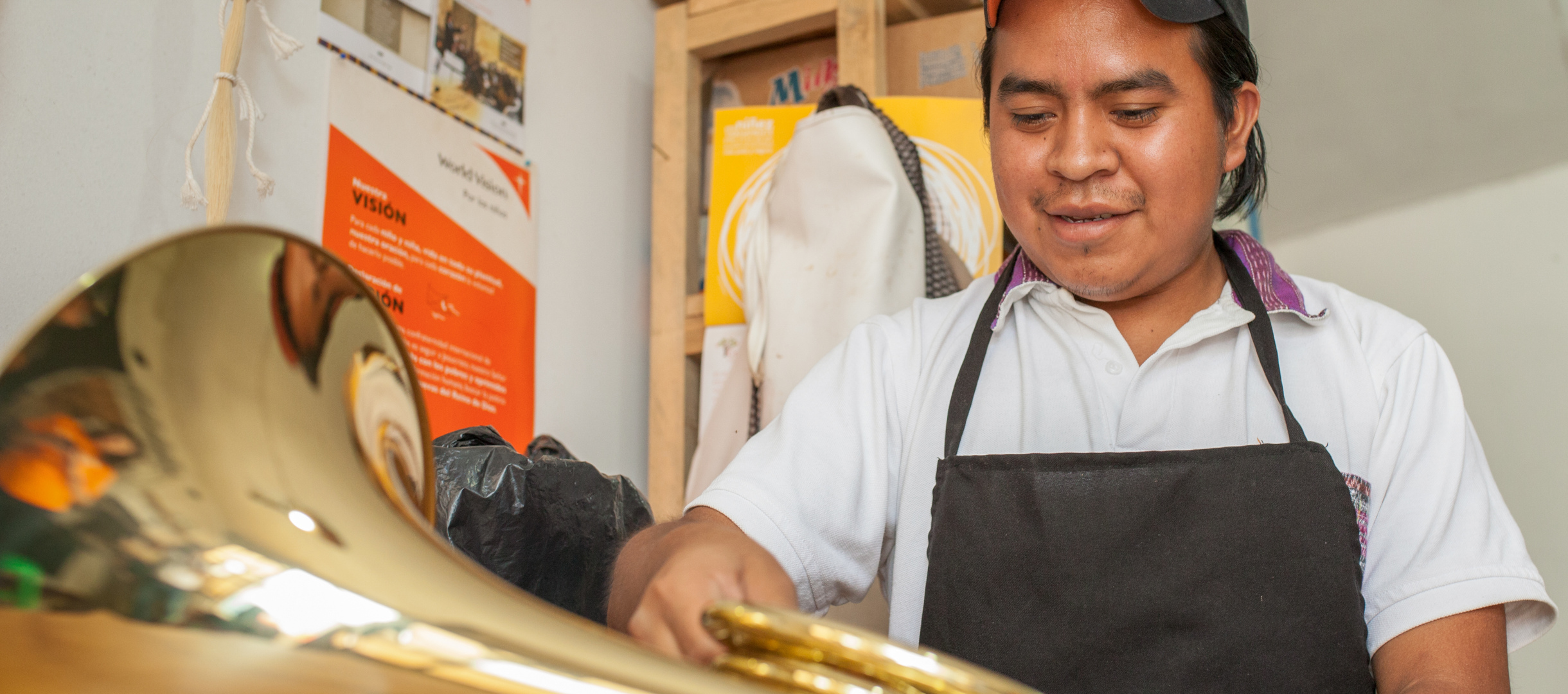 Erfolgsgeschichten wie die von Geovanny aus Guatemala bestärken uns immer wieder in unserer Arbeit. Er war erst zehn Jahre alt, als er Patenkind wurde. Seine Eltern waren einfache Leute und mussten hart arbeiten, um das Überleben der Familie zu sichern. Als Geovanny ihnen erzählte, dass er gerne in die von World Vision betriebene Musikschule gehen wolle, waren sie zuerst dagegen, aber Geovanny hörte nicht auf zu fragen. Als er das erste Mal eine Flöte in der Hand hielt, wusste er, dass die Musik sein Leben verändern sollte.