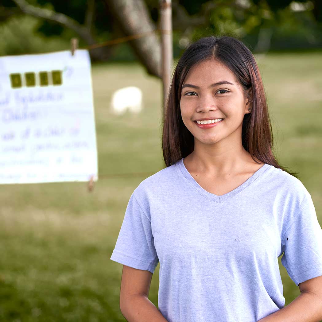 Seitdem viele Kinder wegen der Pandemie noch mehr Zeit im Internet verbringen, steigt auch die Gefahr, dass sie dort auf Betrügerinnen und Betrüger hereinfallen. So kommt es, dass intime Videos und Bilder an die falschen Leute weitergegeben werden, erklärt die 16-jährige Michaela aus den Philippinen. Deshalb klärt sie Kinder in ihrem Dorf auf, wie sie sich vor dieser Ausbeutung schützen können.