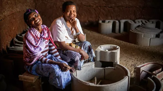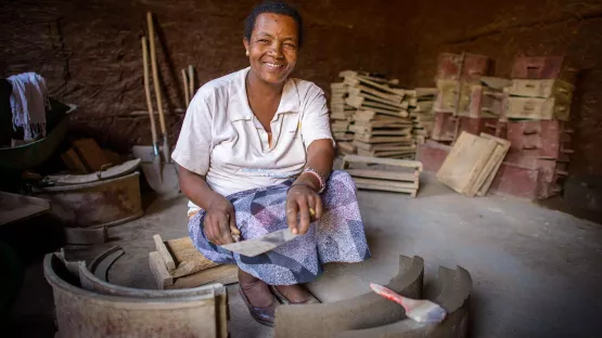 In Wonchi, nur zwei Fahrstunden von Addis Abeba entfernt, lebt eine bemerkenswerte Frau – Bekelech Mulissa. Ihre Geschichte werden vor allem viele allein erziehende Mütter mögen. Bekelech baut energie-effiziente Öfen, die fast keinen Rauch erzeugen und damit sowohl gesünder als auch klimafreundlicher sind als die traditionellen Öfen in Äthiopien. Sie wurde vor vier Jahren darin geschult , diese Öfen zu bauen. World Vision hatte in ihrer Region die Umweltprobleme untersucht und ein Projekt für die Einführung der Öfen gestartet. „Unser Injera schmeckt sogar besser, seit wir es mit diesem Ofen backen“, sagt Bekelech. Warum wurde sie für das Training ausgewählt? Die Dorfvertreter wussten, dass sie dringend einen Job brauchte. Bekelech war als Mädchen früh von ihren Eltern verheiratet worden – obwohl sie eine sehr gute Schülerin war. Ihre Lehrerin bat sie, die Schule nicht zu verlassen. Aber Bekelech hatte kein Mitspracherecht.