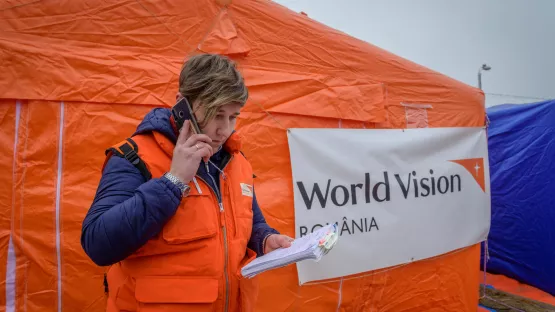 Die rumänische Psychologin Florentina Cretu arbeitet normalerweise in Kinderhilfsprogrammen von World Vision in der Stadt Iasi. In den letzten Wochen war sie aber auch viel am rumänisch-ukrainischen Grenzübergang in Siret im Einsatz. Dort legen täglich hunderte oder auch tausende Mütter, Kinder und alte Menschen nach den Strapazen der Flucht eine Rast ein und informieren sich in Zelten über die Möglichkeiten zur Weiterreise. Aber in diesen Zelten sah Florentina Cretu dass die Kinder nichts zu tun hatten. Deshalb stellte sie mit dem Helfer-Team ein beheiztes Zelt speziell für die Kinder auf. Sie sagt: „Selbst wenn die Kinder hier nur zwei, drei oder vier Stunden bleiben, brauchen sie einen freundlichen Ort und Zuwendung.“
