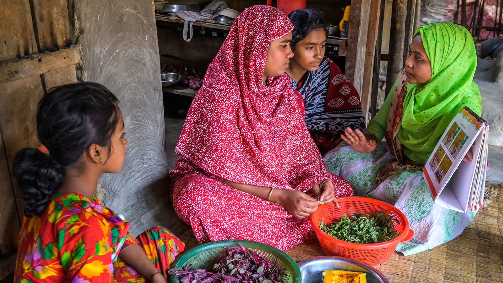 Eine Ernährungsberaterin kommt zum Beispiel oft vorbei, um das Wachstum von Habibur und Fatema Rahmans neuem Baby Habiba zu beobachten. „Früher wusste ich nicht, wie ich mich während der Schwangerschaft ernähren sollte“, sagt Fatema, die 32-jährige Mutter. „Jetzt weiß ich, wie man sich während der Schwangerschaft ernährt. Ich kann für mich und mein Baby sorgen.“