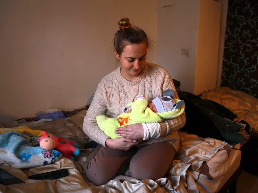 Im Jahr 2014 hatten Tatiana und ihre Familie bereits Krieg erlebt. Sie waren nach Ausbruch der Kämpfe zwischen ukrainischer Armee und Separatisten in Sloviansk geblieben, und sie war sich sicher, dass sie auch dieses Mal nicht gehen würde. Sie wollte ihr Kind auf die Welt bringen, umgeben von Familie und Liebe. Aber es kam im Oktober 2023 der Moment, an dem sie wieder einmal ihre Sachen packen musste. Es war ihre dritte Umsiedlung. "Ich war mit meinen beiden Kindern spazieren, als ich drei bis vier Explosionen in der Nähe unseres Hauses hörte. Am nächsten Tag noch eine, und noch eine, und noch eine", erinnert sie sich. Es wurde zur Routine, von Luftangriffssirenen aufzuwachen, die sich manchmal sechs bis acht Mal am Tag wiederholten. „Das Schwierigste für mich als Mutter war, vor meinen Kindern so zu tun, als ob alles in Ordnung wäre und wir in Sicherheit wären", erklärt Tatiana.