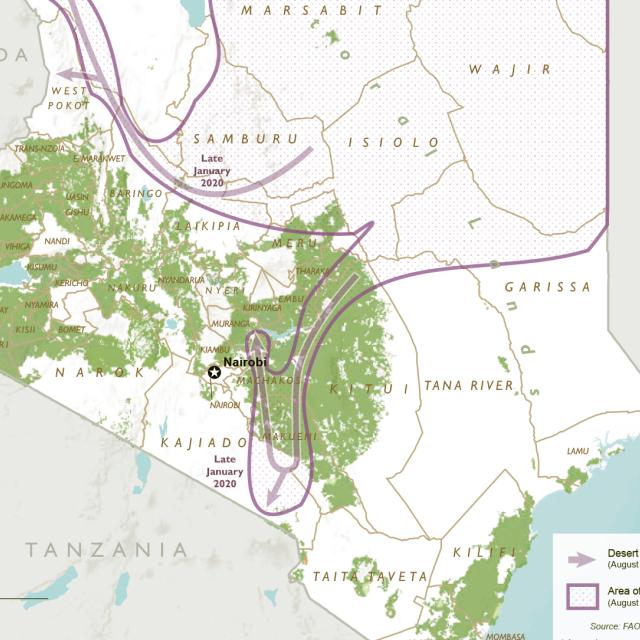 Der schlimmste Fall von Wüstenheuschrecken seit 25 Jahren breitet sich über Ostafrika aus und bedroht die Lebensgrundlagen und die Ernährungssicherheit von Millionen von Menschen. Die Wüstenheuschrecke (Schistocerca gregaria Forskål) ist eine Heuschreckenart, die mit zunehmender Anzahl und Dichte riesige und äußerst mobile Schwärme bilden kann. In Kenia wurden am 28. Dezember 2019 erstmals Schwärme von Wüstenheuschrecken in den Bezirken Mandera und Wajir gemeldet. Nach Angaben des Landwirtschaftsministeriums und der Ernährungs- und Landwirtschaftsorganisation der Vereinten Nationen (FAO) vom Februar 2020 sind - gemessen an der Landmasse - 75 Prozent des Landes betroffen. Zu den in Kenia am schlimmsten betroffenen Bezirken gehören die Bezirke Mandera, Marsabit, Wajir, Isiolo, Meru und Samburu. Diese haben zusammen 5.000 km2 (500.000 ha) an Fläche aufgrund der Heuschreckenplage verloren . Die sich weiter ausbreitende Wüstenheuschrecken-Plage wird Hunger und Unterernährung für ungefähr 3 Millionen Menschen in Kenia bedeuten, weil die Heuschrecken Agrarflächen befallen und somit die Ernten zerstören. Die agropastoralistischen Gemeinschaften im Norden Kenias sind besonders verwundbar und erholen sich gerade von einer langen Dürre und einer daran anschließenden, sehr starken Überschwemmung des Landes . Diese Menschen erleben daher eine besondere Not. Ohne ein Eingreifen ist in den kommenden Monaten mit einer gravierenden Verschlechterung der Ernährungssicherheit in den ländlichen Gebieten im Nordosten Kenias zu rechnen. Zu verhindern, dass die gegenwärtige Wüstenheuschreckenkrise zu einer Katastrophe wird ist entscheidend, um die negativen Auswirkungen auf das Leben von Millionen von Menschen in der gesamten Region zu mildern.