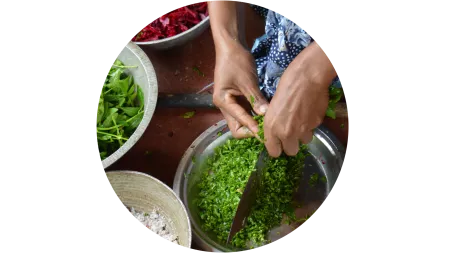 Zusätzlich bieten wir Kochkurse für Mütter an. Dort lernen sie, was eine gesunde Ernährung ausmacht und wie sie leckere und nahrhafte Mahlzeiten für ihre Kinder zubereiten. So stellen wir sicher, dass die Kinder nicht nur genug, sondern auch das Richtige essen.