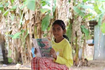 „Mein Name ist Khy Daria und ich bin ein Patenkind. Als ich in der 2. Klasse war, konnte ich nicht buchstabieren und traute mich nicht, die Lehrerin zu fragen, obwohl ich nichts verstand, und als die Lehrerin mich aufforderte, zu lesen, habe ich nichts gesagt. Im Jahr 2018 nahm ich jeden Sonntag an dem von World Vision initiierten Lesecamp teil. Als wir im Lesecamp ankamen, forderte uns der Betreuer auf, verschiedene Spiele zu spielen, wie zum Beispiel Vokallotterie, Buchstabenzuordnung, Wortzuordnung, Wortverarbeitung und Wortschreibweise. Dann las er uns eine Geschichte vor, stellte uns Verständnisfragen und leitete uns an, mit Freude neue Wörter zu finden. Die Teilnahme an diesem Lesecamp hat mir sehr viel Spaß gemacht, weil ich viele verschiedene Spiele spielen konnte. Jetzt bin ich in der 4. Klasse und kann lesen und schreiben, weil ich an dem Lesecamp teilgenommen habe."