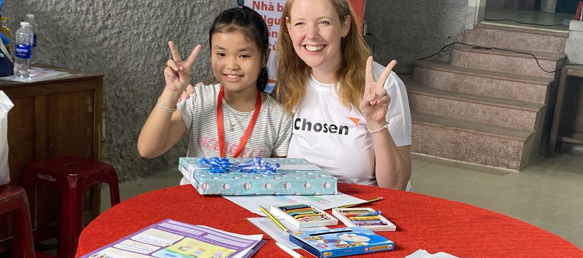 Bei dem Wunschpaten-Event in einem Projektgebiet von World Vision konnten Kinder ihre Paten und Patinnen selbst anhand von Fotos aussuchen. „Ganz besonders war für mich natürlich der Moment, als mein Patenkind Vi bei meinem Foto stehen blieb, es betrachtete und es dann schließlich von der Leine nahm und sich damit für mich entschieden hatte. Dass ich diesen Moment live erleben und sie danach auch direkt kennenlernen durfte, war für mich eine unbeschreibliche Erfahrung.“